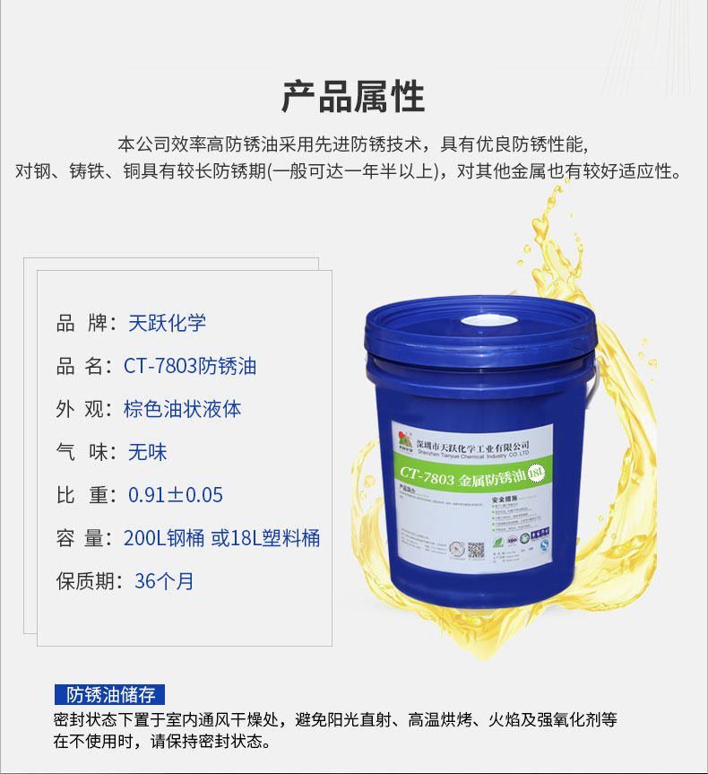 產(chǎn)品具有優(yōu)良防銹性能,對(duì)鋼、鑄鐵、銅具有較長(zhǎng)防銹期(一般可達(dá)一年半以上),對(duì)其他金屬也有較好適應(yīng)性,浸涂,刷涂,噴涂,浸入都可適用。